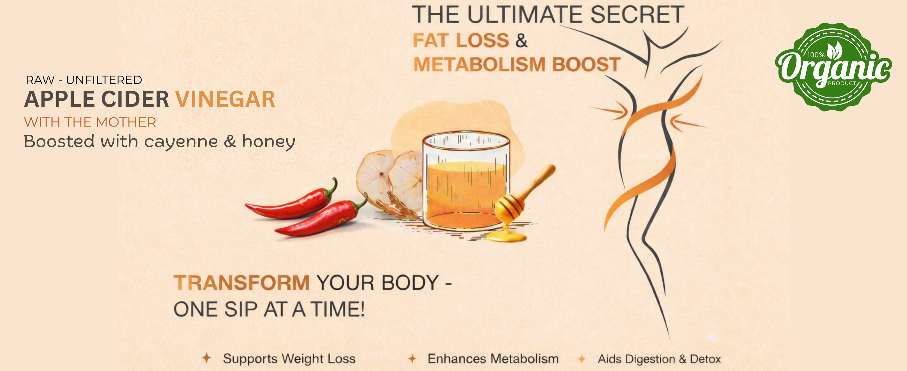 Seeing the incredible results—boosted metabolism, improved gut health, and natural weight loss—we knew we had to share this with the world. Our apple cider vinegar is made with the finest organic ingredients, ensuring you get a pure, effective, and chemical-free solution for your health goals.