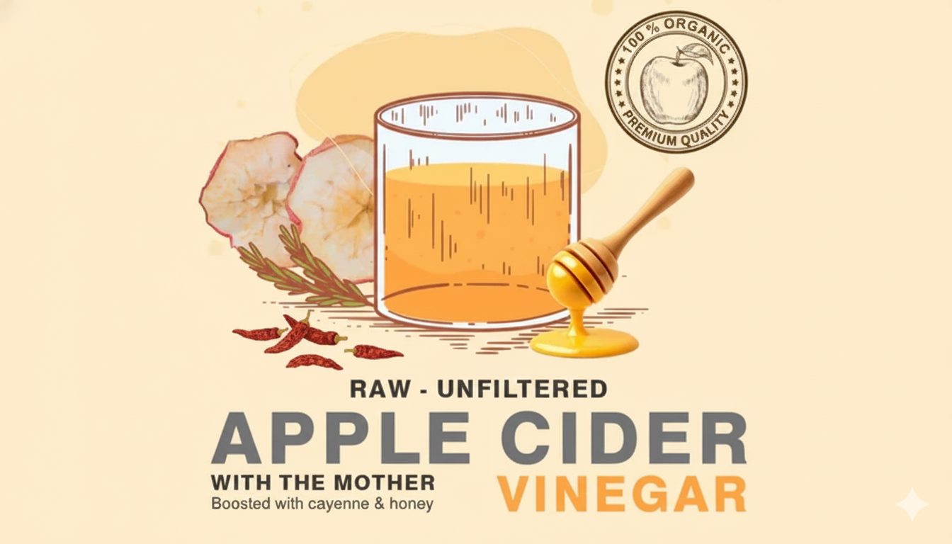 Raw organic honey and ACV promote gut health and smooth digestion.